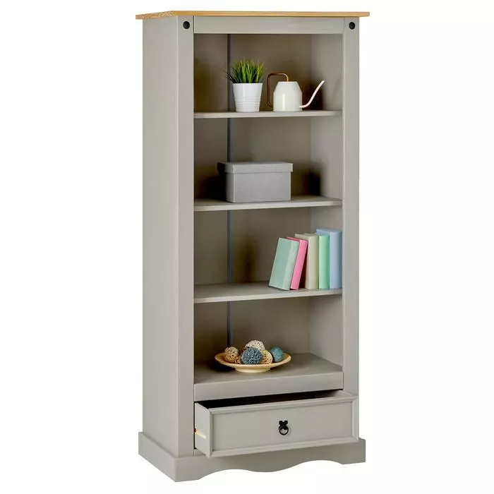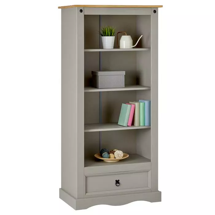 IDIMEX Bücherschrank TEQUILA, Kiefer Massiv Grau/braun, Mexiko