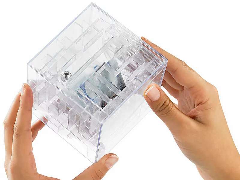 Klingt einfach? Ist es aber nicht! Auf 4 Seiten des Würfels manövrieren Sie die Metall-Kugel durch Gänge und Löcher, fallen hinab, biegen falsch ab und haben sich plötzlich total verirrt. Auf welcher Seite bin ich jetzt nochmal? Wo muss ich hin? War ich hier nicht schon mal?