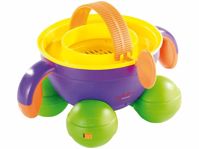 Schillernd, rund und mit riesigem Spaßfaktor: Mit dieser bunten Seifenblasenmaschine zaubern Sie im Nu Riesen-Seifenblasen, ohne dass Ihnen die Puste ausgeht! Der Clou ist der eingebaute Ventilator, der die Seifenblase wie von selbst größer und größer werden lässt.