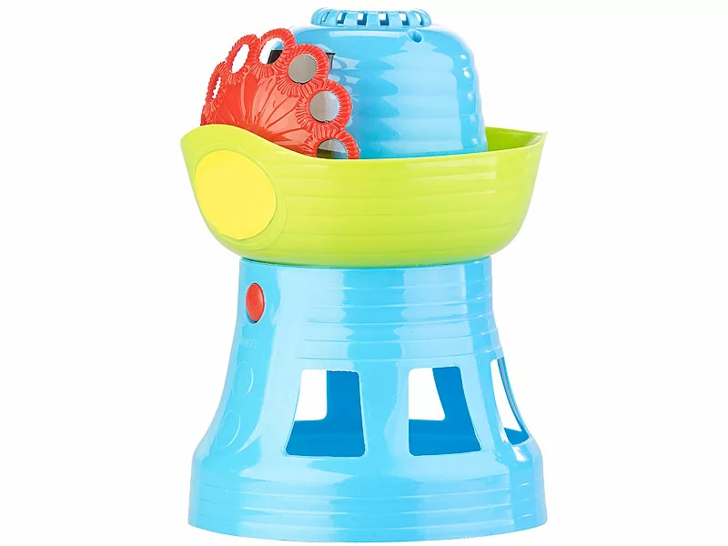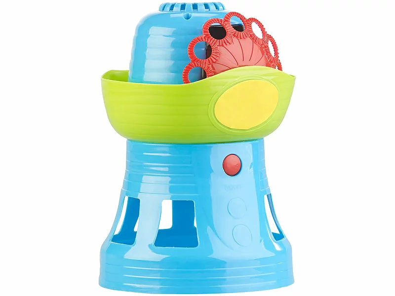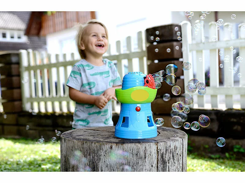 Begeistert und bezaubert Groß und Klein: Schillernd-schöne Seifenblasen sorgen seit jeher für leuchtende Kinder-Augen und riesigen Spielspaß. Der lustige Leuchtturm pustet sie im 360°-Winkel rundherum in die Luft!