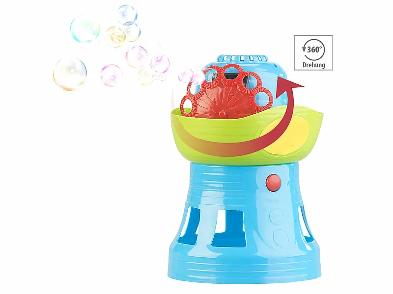 - Sorgt für jede Menge Spaß: versprüht Seifenblasen im 360°-Winkel