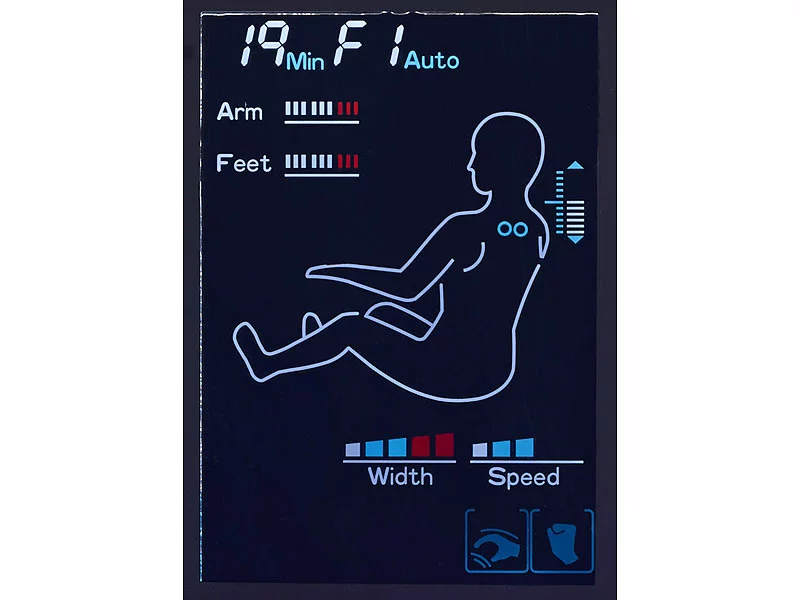 - 5 Einstellungen für Oberkörper-Massage mit Anpassung der Massage-Position, je 3 Geschwindigkeiten