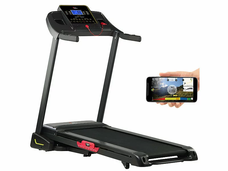 Bequeme Auswertung über Ihr Smartphone: Synchronisieren Sie das Laufband einfach per Gratis-App mit Ihrem Android-Smartphone, iPhone oder iPod. Schon erstellen Sie sich eigene Trainingspläne, joggen vorgegebene Strecken ab oder absolvieren spezielle Lauf-Workouts. Natürlich können Sie Ihren Trainingserfolg auch analysieren.