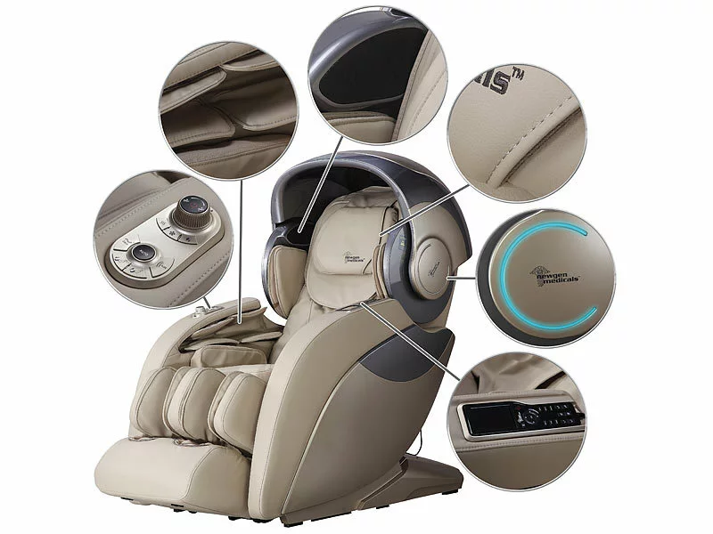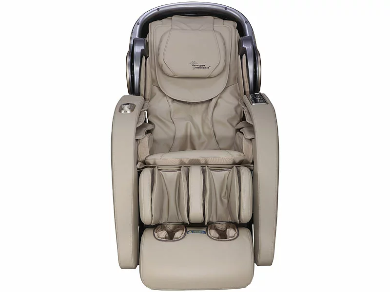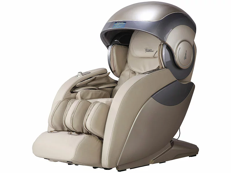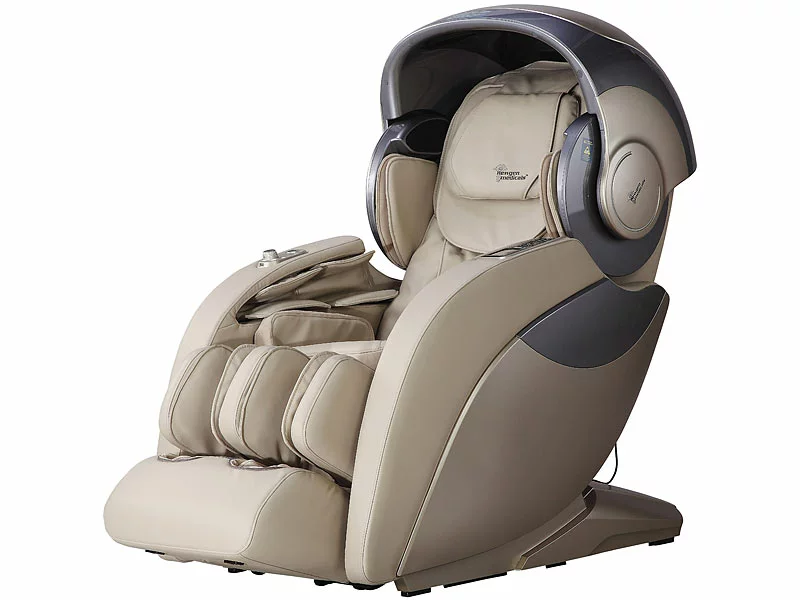 - Luxus-Ganzkörper-Massagesessel in Beige mit Space-Cover, Bluetooth und App