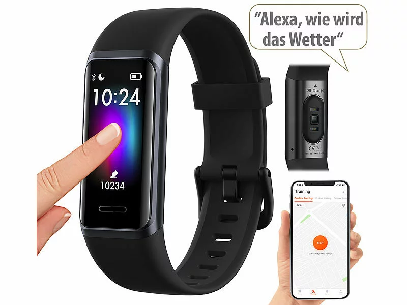 - Unterstützung für Amazon Alexa: integriertes Mikrofon für Sprachassistent-Nutzung direkt über das Armband