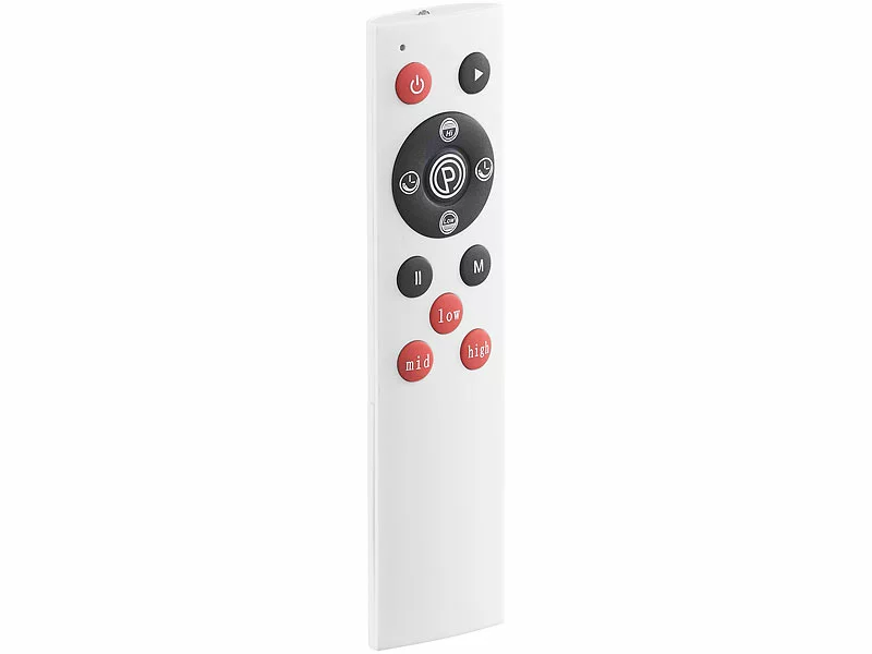 - Fernbedienung zum Ein-/Ausschalten, für Betriebsmodus, Geschwindigkeit und Timer