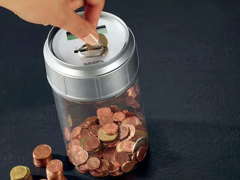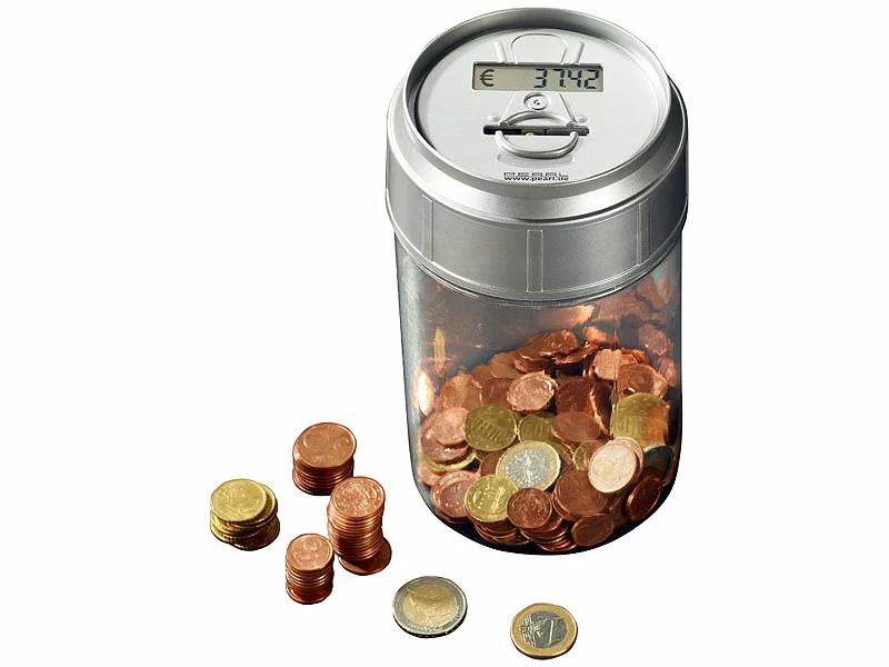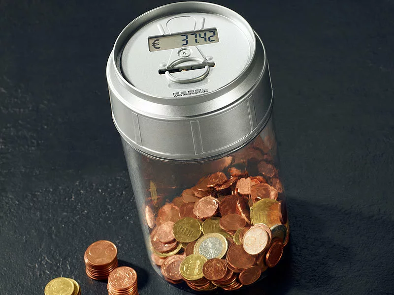 Mit integriertem Münzzähler: Die Dose erkennt beim Einwurf jede Euro-Münze anhand der Größe und zeigt den eingeworfenen Wert sowie Ihre Gesamt-Sparsumme. So wissen Sie immer Ihren aktuellen Spar-Stand – ganz ohne mühevolles Zählen und Rechnen!