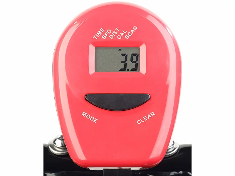 - Abnehmbarer Trainings-Computer mit Abschalt-Automatik: zeigt Zeit, Geschwindigkeit, Distanz, Kalorienverbrauch