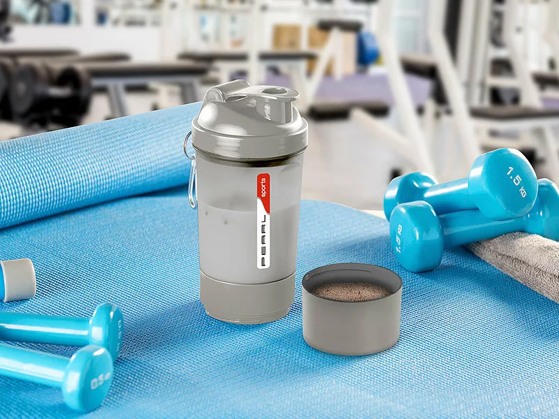 - Fitness-Drink-Shaker inklusive abschraubbaren Pulverbehälter sowie Pillendose und deutscher Anleitung – Fitness Becher – Außerdem relevant oder passend zu: Ball, Mixer, Tasse, Sport, Tassen, Kaffee, Flasche, Flaschen, Messbecher, Pulverkammer