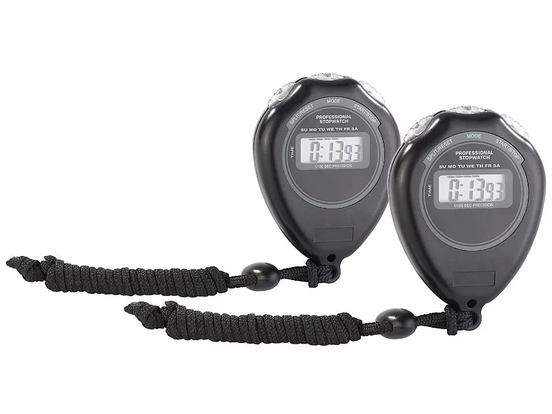 - 2 Praktische, klassische Stoppuhren mit jeweils digitalem LCD-Display