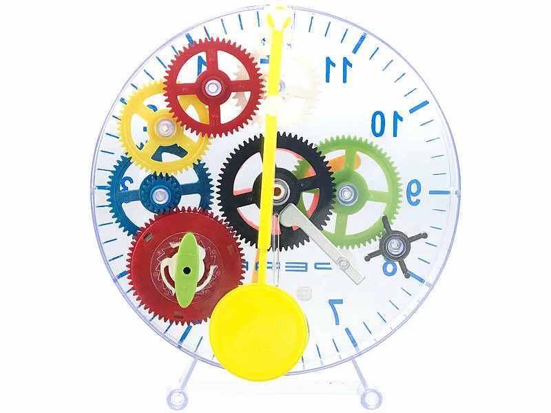 So anschaulich kann eine normale Uhr oder ein Lexikon niemals sein. Das volltransparente Gehäuse lässt auch nach der Montage alle Einzelteile noch klar erkennen. Man sieht die antreibende Arbeit des Pendels, die präzise Abstimmung der Zahnräder und wie diese die Zeiger bewegen. Zusätzlich versorgt Sie die Anleitung mit vielen detaillierten Erklärungen zu den Abläufen im Inneren der Uhr.