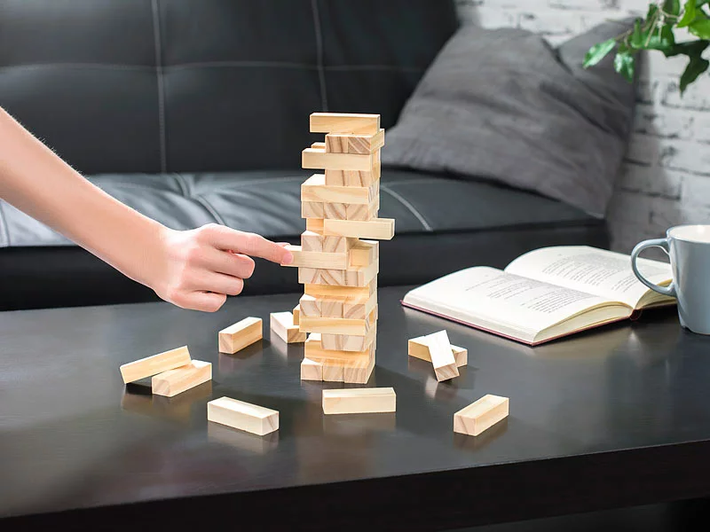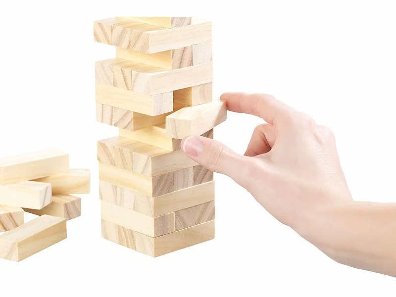 - Wackelturm bestehend aus 48 hölzernen Spielsteinen
