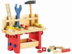 Mit dieser lustigen Holzwerkbank wird Ihr kleiner Handwerker seine helle Freude haben! Viele bunte Schrauben und Muttern verführen zum ausgiebigen Werken.