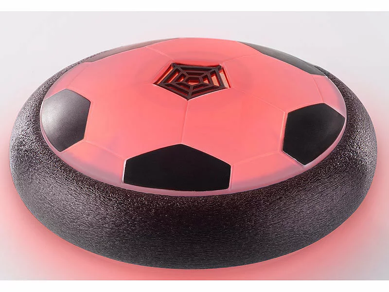 Allein oder im Team: Jetzt wird es nie mehr langweilig! Mit bunt blinkenden LEDs macht der Luftkissen-Fußball auch im Dunkeln Spaß.