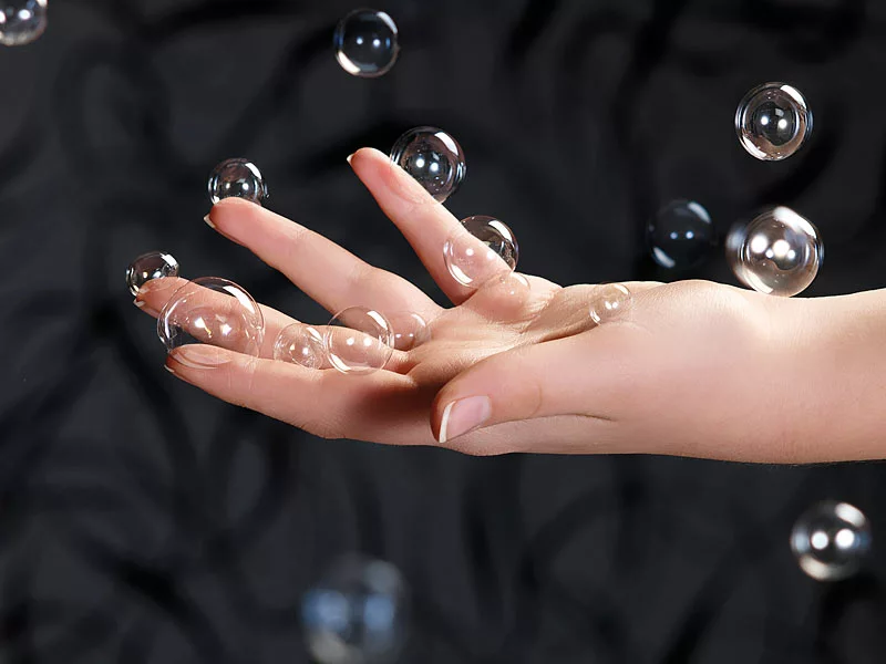 Auch zum Fangen und Anfassen: Diese Seifenblasen können mehr als nur gut aussehen. Sie lassen sich sogar vorsichtig einfangen und Sie können sie berühren! Mit etwas Geschick stapeln Sie die Blasen sogar.