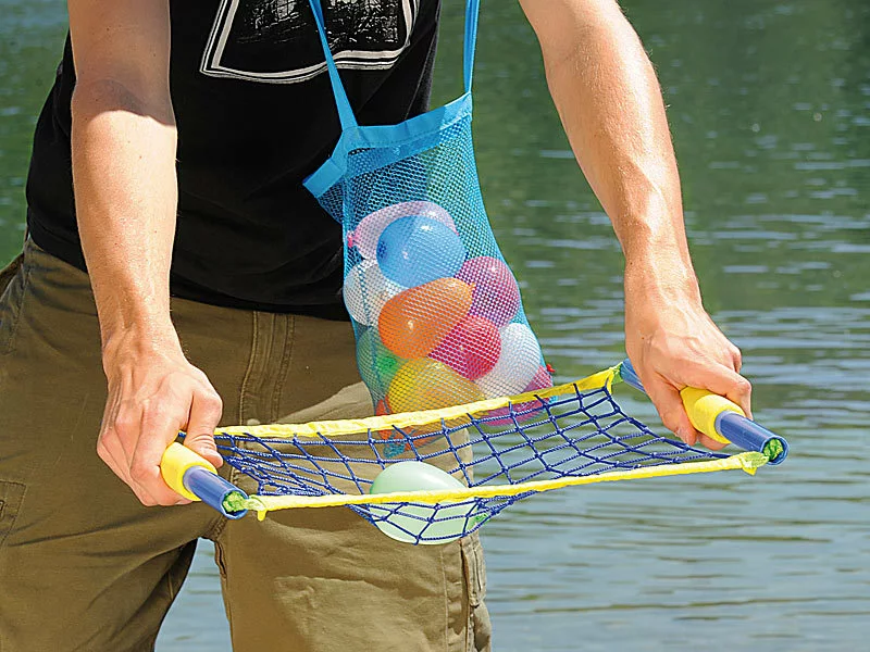Der Wasserbomben-Nervenkitzel für Unerschrockene und gleichzeitig ein lustiges Strandspiel für die ganze Familie. Die 2 Netze dienen als Fang-Hilfe und Schleuder in einem.
