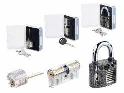 AGT Übungsschloss:Lockpicking-Set Mit 30-teiliger Dietrich-Tasche & 4 Übungs-Schlössern