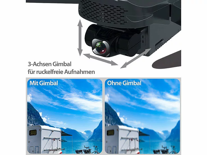 - Elektronisch stabilisiertes 3-Achsen Gimbal für ruckelfreie Aufnahmen