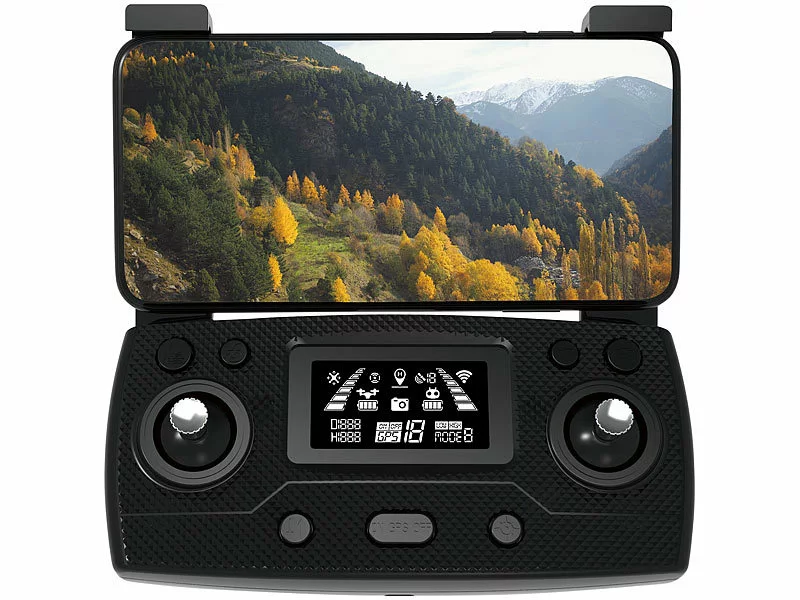 - Kostenlose App für Android und iOS: für Steuerung, Akku-Anzeige, Geschwindigkeit, Höhe, Distanz, Virtual Reality-Funktion, Foto- und Videoaufnahme auf Mobilgerät