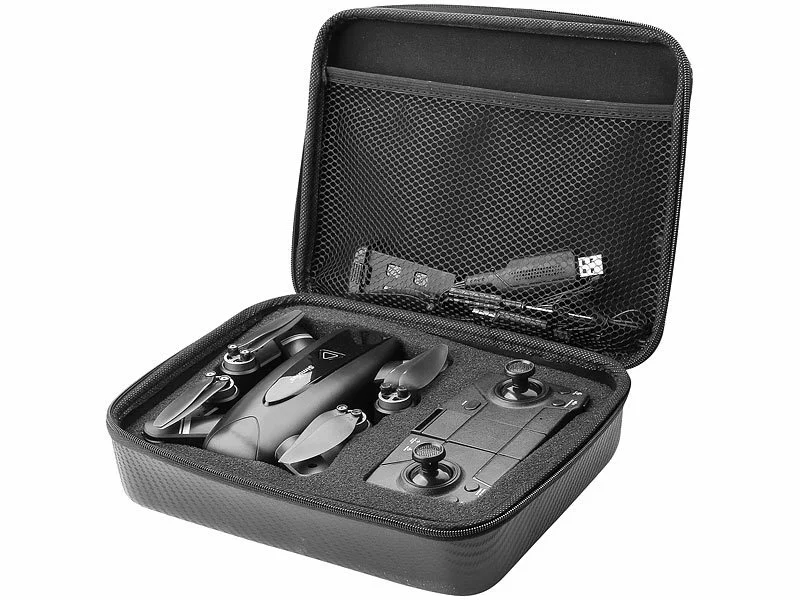 - Quadrocopter GH-265.fpv inklusive Akku, Fernbedienung mit integriertem Akku, 2 Ersatz-Rotoren, 2 Ladekabel, Schraubendreher, Transportbox und deutscher Anleitung – Fotodrohne – Außerdem relevant oder passend zu: RC, Dron, Funk, drohn, Quadro, Dronen, Router, Faltbarer, Hubschrauber