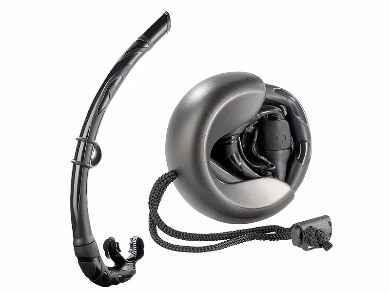 Toll auch für sogenannte Apnoetaucher: Falten Sie den Schnorchel einfach vor dem Tauchgang zusammen. Befestigen Sie ihn dann mitsamt seiner praktischen Aufbewahrungs-Schale z.B. an Ihrem Taucheranzug.