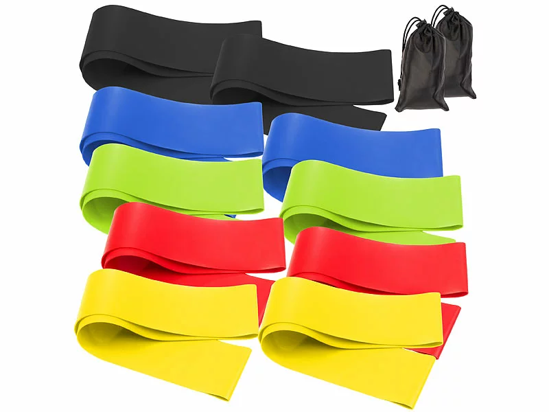 - Zwei 5er-Sets Fitnessbänder zum Training der verschiedenen Muskelgruppen: Rücken, Arme, Schulter, Bauch, Beine u.v.m.