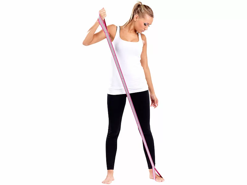 - Fitnessband zum Training der verschiedenen Muskelgruppen: Rücken, Arme, Schulter, Bauch, Beine u.v.m.