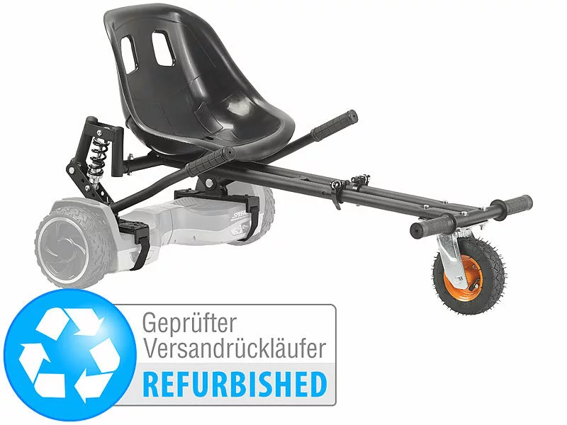 Neuer Fahrspaß mit Ihrem Elektro-Scooter: Rüsten Sie Ihr Rollbrett im Handumdrehen zum Kart um! Den Abstand zwischen Sitz und Fußablage passen Sie ganz einfach Ihrer Körpergröße an. Schon finden Sie bequem Halt – und flitzen mit völlig neuem Fahrgefühl drauf los.