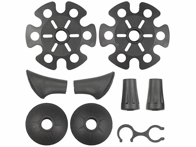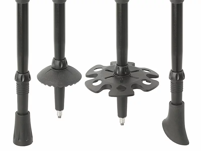 - Trekking-Stöcke inklusive 2 Asphalt-Pads, 2 Trekking-Tellern, 2 Schneetellern und Halte-Clip – Wanderstock – Außerdem relevant oder passend zu: Teller, Spitzer, Trainer, Wandern, Teleskop, Damen, Geschenk Herren, Outdoor unterwegs
