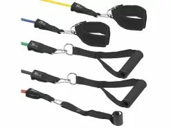 PEARL Sports Fitnessbänder:5er-Set Widerstandsbänder Mit Griffen, Fußschlaufen Und Türanker